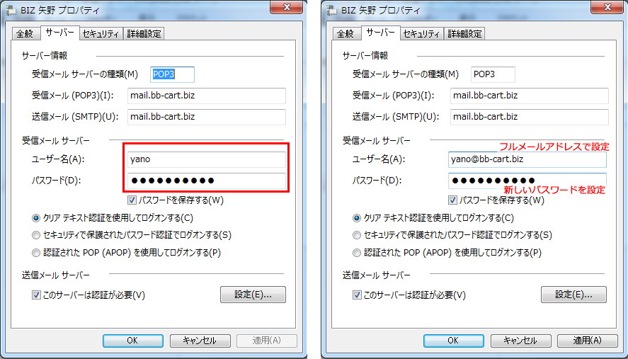 ■サーバー移行後のメール設定の変更